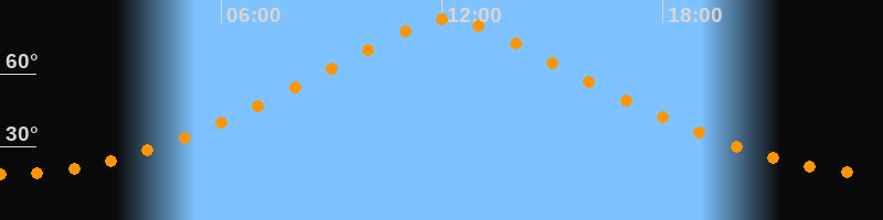 | Höchster Stand (Kulmination) | 12:09 Uhr (h = 82,4°) |