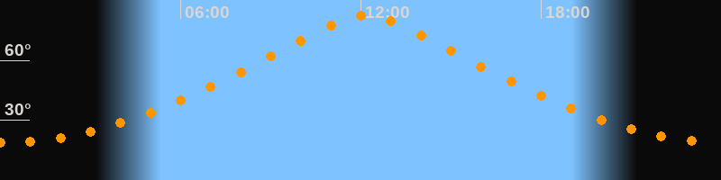 | Höchster Stand (Kulmination) | 12:10 Uhr (h = 82,4°) |