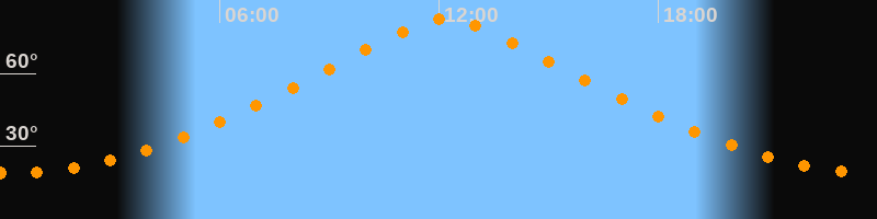 | Höchster Stand (Kulmination) | 12:11 Uhr (h = 82,4°) |
