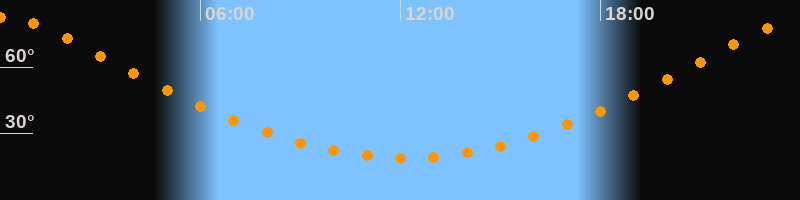 | Höchster Stand (Kulmination) | 00:08 Uhr (h = 82,4°) |