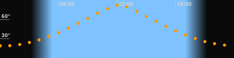 | Höchster Stand (Kulmination) | 12:12 Uhr (h = 82,4°) |