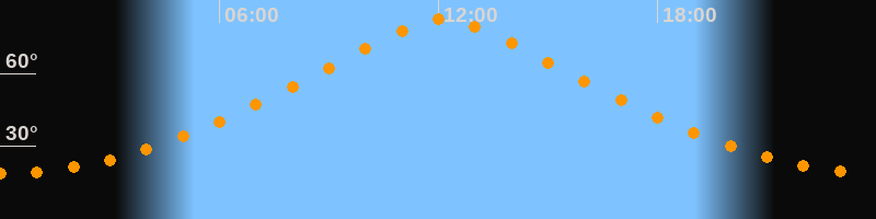 | Höchster Stand (Kulmination) | 12:08 Uhr (h = 82,4°) |