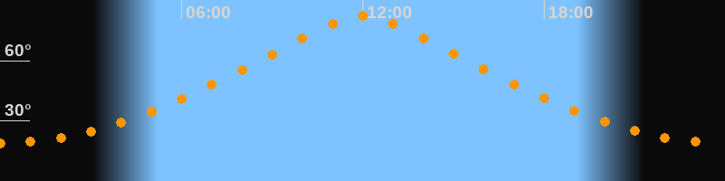 | Höchster Stand (Kulmination) | 12:00 Uhr (h = 82,4°) |