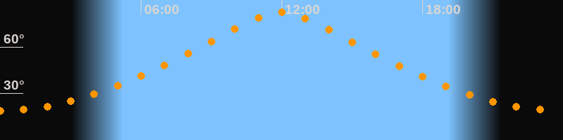 | Höchster Stand (Kulmination) | 11:58 Uhr (h = 82,4°) |