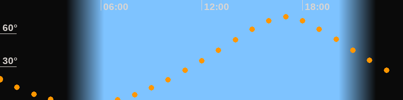 | Höchster Stand (Kulmination) | 17:00 Uhr (h = 75,2°) |