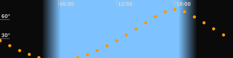 | Höchster Stand (Kulmination) | 17:59 Uhr (h = 75,5°) |