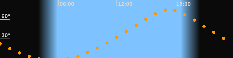 | Höchster Stand (Kulmination) | 17:24 Uhr (h = 75,5°) |