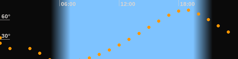 | Höchster Stand (Kulmination) | 18:37 Uhr (h = 75°) |