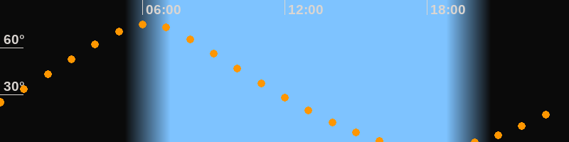 | Höchster Stand (Kulmination) | 06:11 Uhr (h = 75°) |
