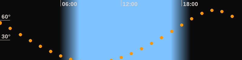 | Höchster Stand (Kulmination) | 21:11 Uhr (h = 75°) |