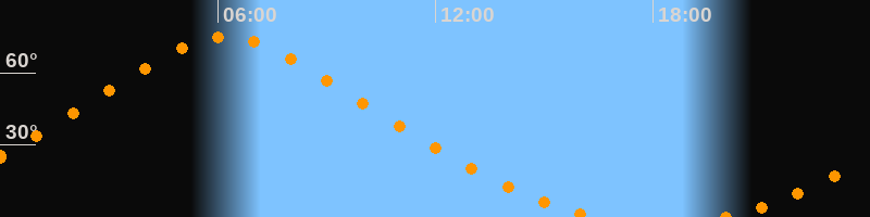 | Höchster Stand (Kulmination) | 06:13 Uhr (h = 75°) |