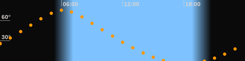 | Höchster Stand (Kulmination) | 06:09 Uhr (h = 75°) |