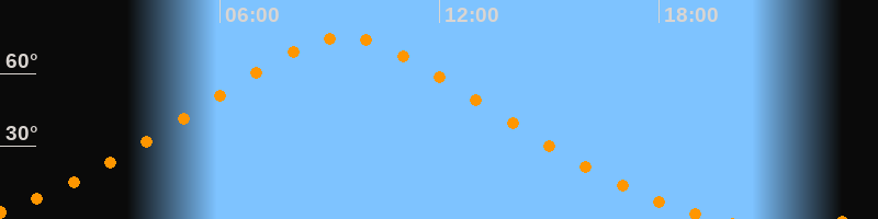 | Höchster Stand (Kulmination) | 09:24 Uhr (h = 75°) |