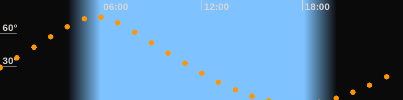 | Höchster Stand (Kulmination) | 05:43 Uhr (h = 75°) |