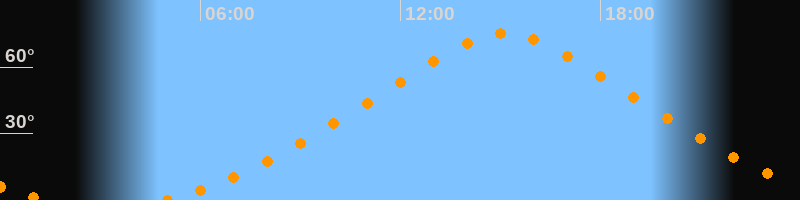 | Höchster Stand (Kulmination) | 15:08 Uhr (h = 75°) |
