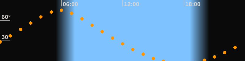 | Höchster Stand (Kulmination) | 05:50 Uhr (h = 75,1°) |