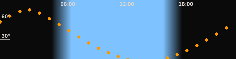 | Untergang | 13:03 Uhr im Norden (αAz = 339,6°) |