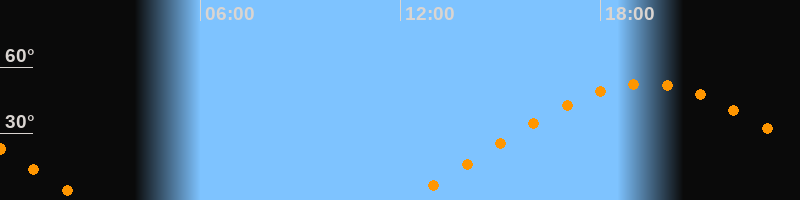 | Aufgang | 12:11 Uhr im Osten (αAz = 68°) |