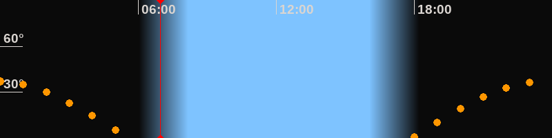 | Untergang | 05:38 Uhr im Westen (αAz = 267,5°) |