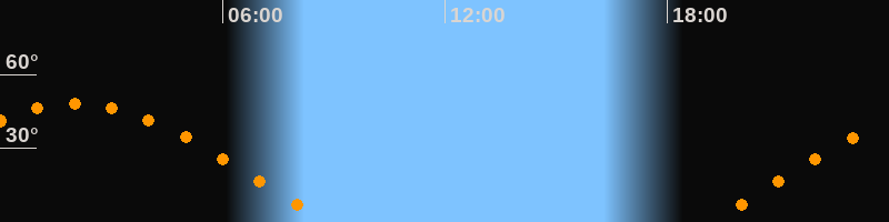 | Höchster Stand (Kulmination) | 02:02 Uhr (h = 48,2°) |