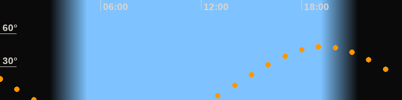 | Aufgang | 12:30 Uhr im Osten (αAz = 75,1°) |