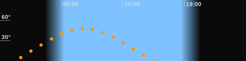 | Höchster Stand (Kulmination) | 08:09 Uhr (h = 48,2°) |