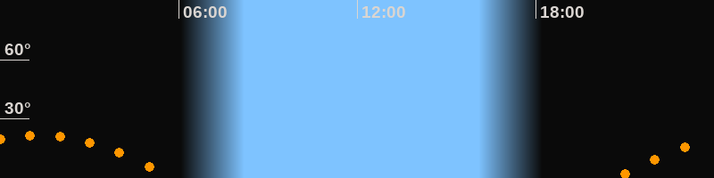 | Untergang | 05:49 Uhr im Südwesten (αAz = 242,4°) |
