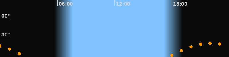 | Aufgang | 17:35 Uhr im Südosten (αAz = 117,6°) |
