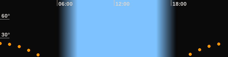 | Untergang | 04:29 Uhr im Südwesten (αAz = 242,4°) |