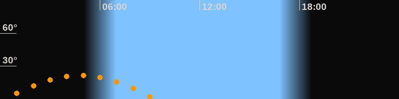 | Untergang | 09:21 Uhr im Südwesten (αAz = 242,4°) |