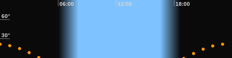 | Untergang | 04:08 Uhr im Südwesten (αAz = 242,4°) |