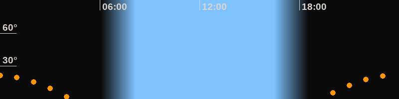 | Untergang | 04:20 Uhr im Südwesten (αAz = 242,4°) |