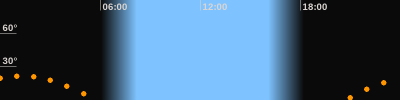| Untergang | 05:48 Uhr im Südwesten (αAz = 242,4°) |