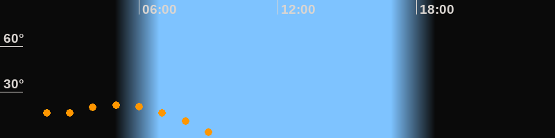 | Höchster Stand (Kulmination) | 05:00 Uhr (h = 21,8°) |