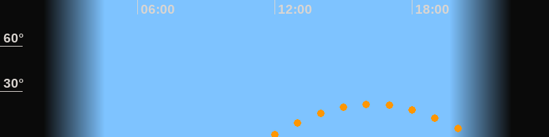 | Aufgang | 11:42 Uhr im Südosten (αAz = 117,6°) |