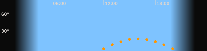 | Aufgang | 11:27 Uhr im Südosten (αAz = 117,6°) |