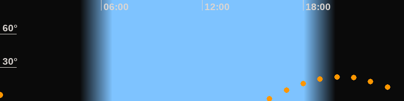 | Aufgang | 15:39 Uhr im Südosten (αAz = 117,6°) |