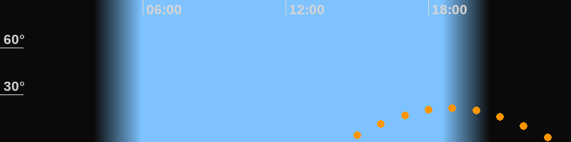 | Aufgang | 14:21 Uhr im Südosten (αAz = 117,6°) |