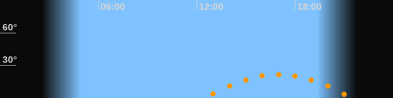 | Aufgang | 12:27 Uhr im Südosten (αAz = 117,6°) |