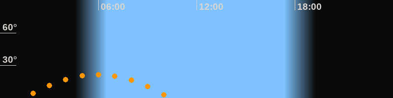 | Höchster Stand (Kulmination) | 05:55 Uhr (h = 21,8°) |