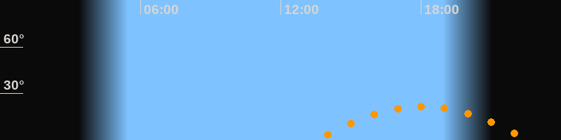 | Höchster Stand (Kulmination) | 18:03 Uhr (h = 21,8°) |