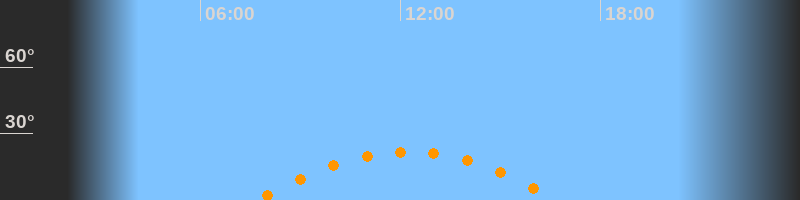 | Höchster Stand (Kulmination) | 12:13 Uhr (h = 21,8°) |