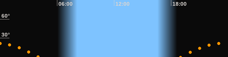 | Untergang | 04:07 Uhr im Südwesten (αAz = 242,4°) |