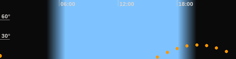 | Aufgang | 15:33 Uhr im Südosten (αAz = 117,6°) |