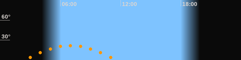 | Höchster Stand (Kulmination) | 07:00 Uhr (h = 21,8°) |