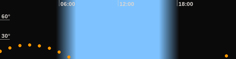 | Untergang | 07:28 Uhr im Südwesten (αAz = 242,4°) |