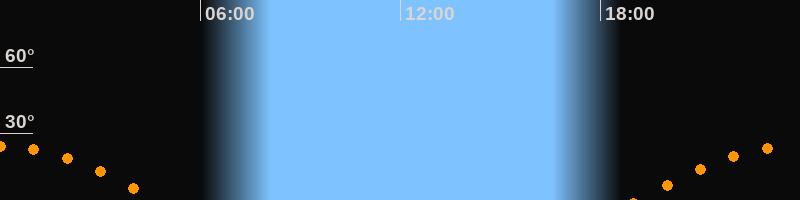 | Aufgang | 19:06 Uhr im Südosten (αAz = 113,4°) |