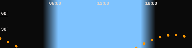 | Untergang | 02:30 Uhr im Südwesten (αAz = 246,6°) |