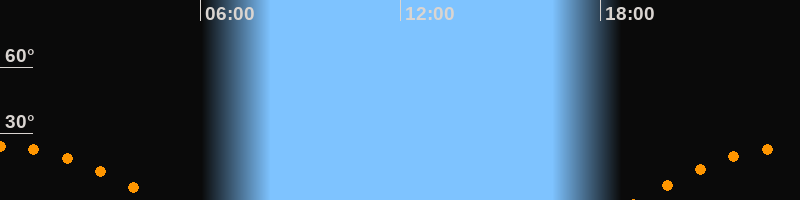 | Untergang | 04:45 Uhr im Südwesten (αAz = 246,6°) |