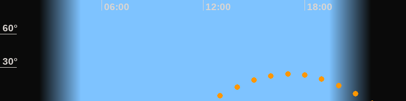 | Aufgang | 12:19 Uhr im Südosten (αAz = 113,4°) |